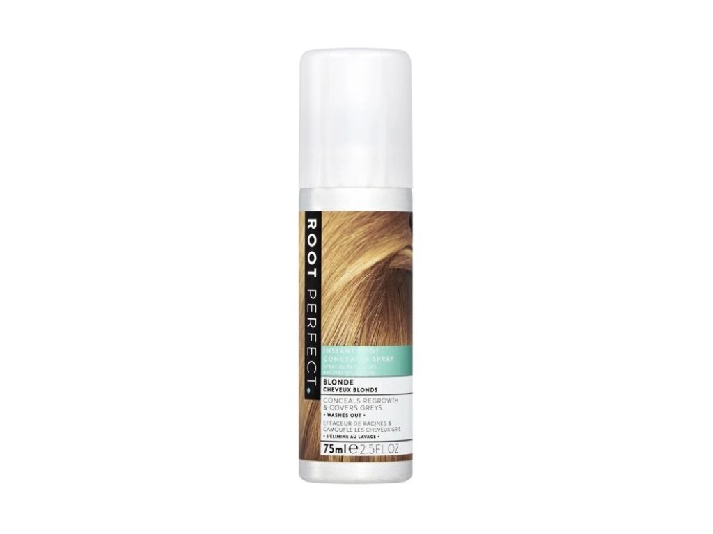 Root Perfect korekční sprej na vlasy stačí nastříkat, nechat zaschnout a odrosty i šediny budou během několika sekund pryč. Sprej dokonale splyne s blond vlasy a vytvoří přirozený a sjednocený vzhled, bez nutnosti trvalého barvení.