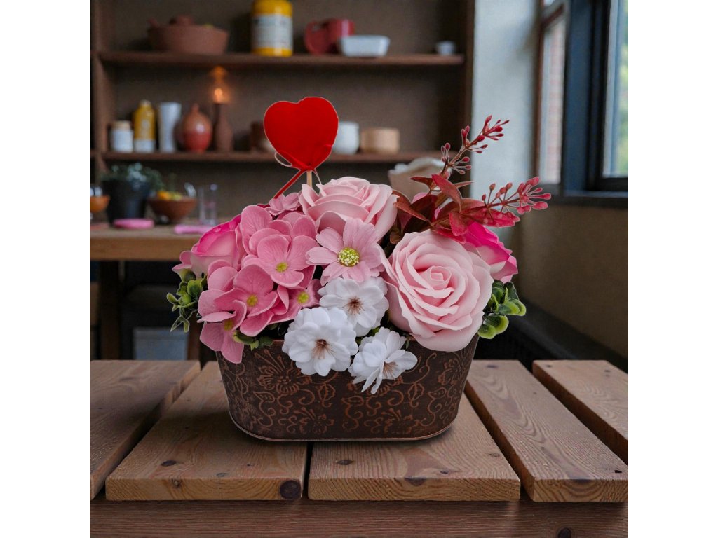 Dekoratives Seifenblumen Bouquet Valentin Pink