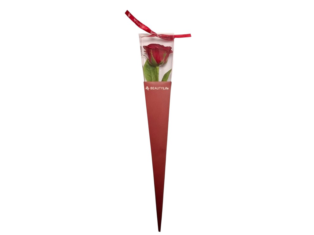 Seifenrosenblüte auf Stiel mit Blütenblättern in Geschenkbox Valentyna