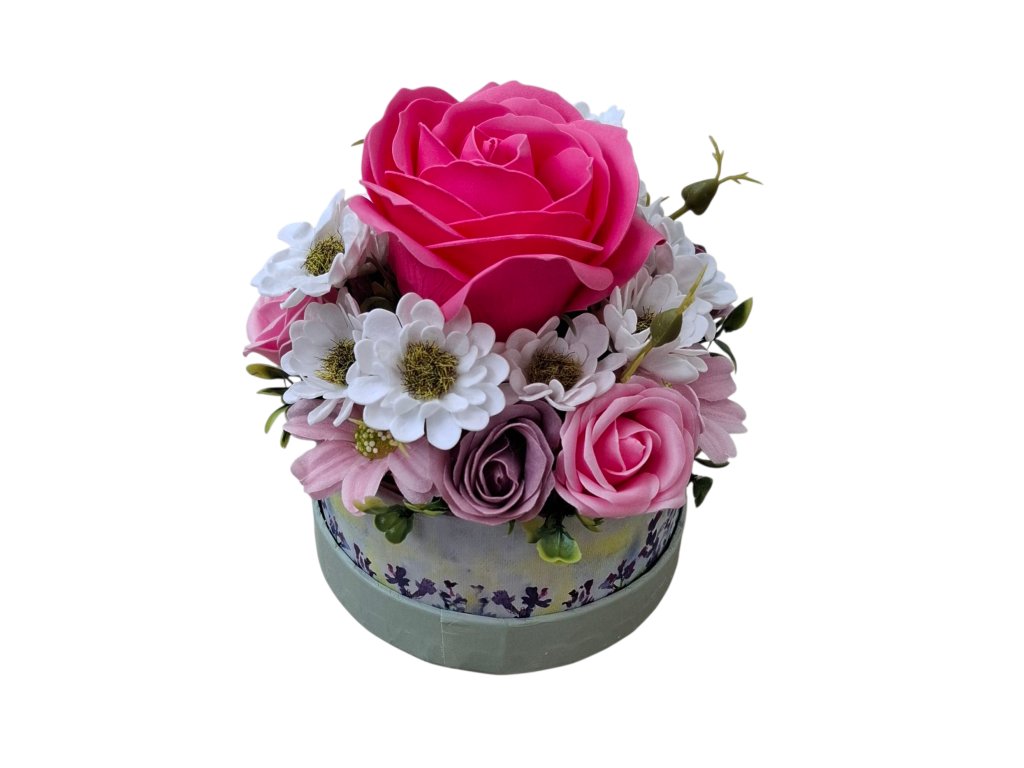 Dekorace Mýdlová kytice v miniboxu Lea Pink