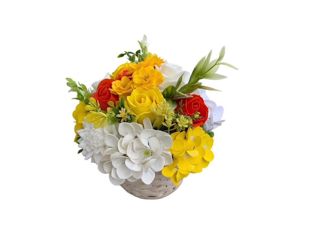 Mýdlová kytice Jarní květy v lýkovém květináči