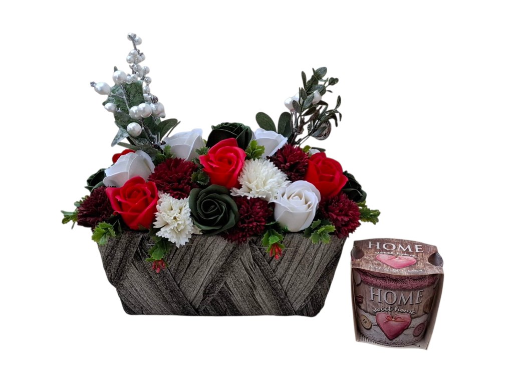 Mýdlová kytice z mýdlových květů Christmas + svíčka