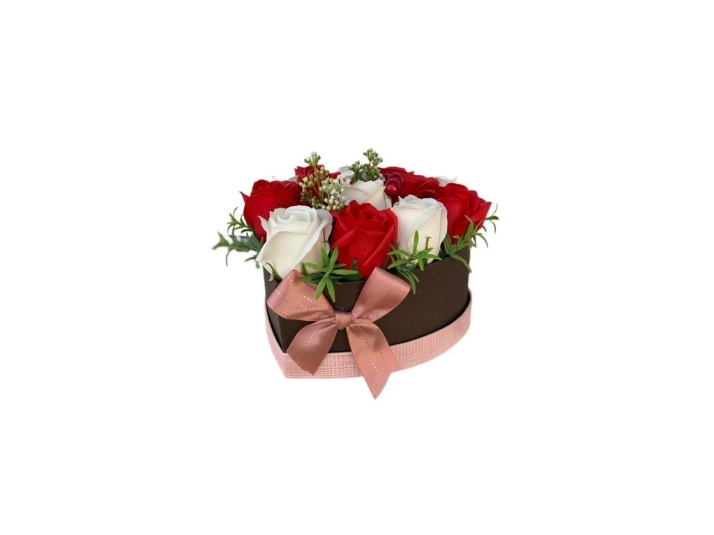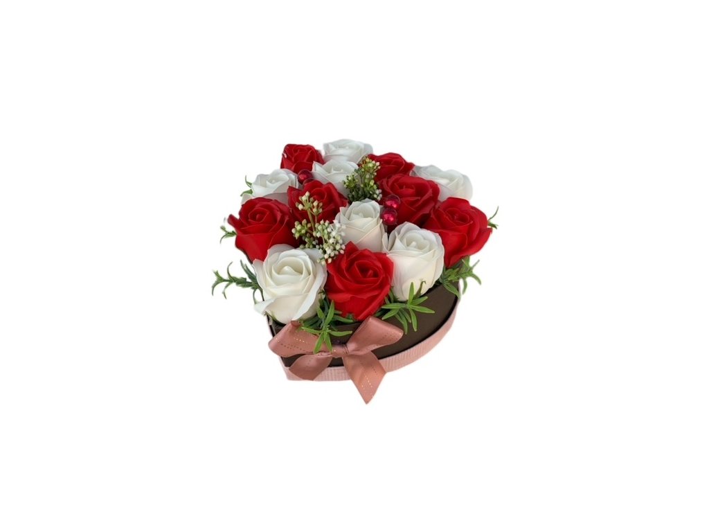 Mýdlová kytice z mýdlových květů Srdce WHITE-RED II