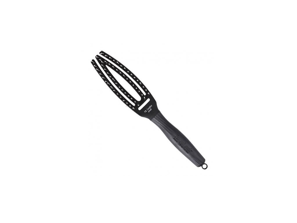 Olivia Garden Fingerbrush Combo Full Black Small Black zakřivený plochý kartáč na vlasy černý
