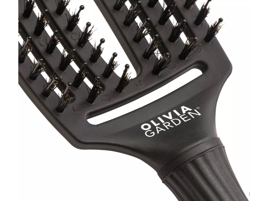 Olivia Garden Fingerbrush Medium Combo Full Black zakřivený plochý kartáč na vlasy černý s kančími štětinami