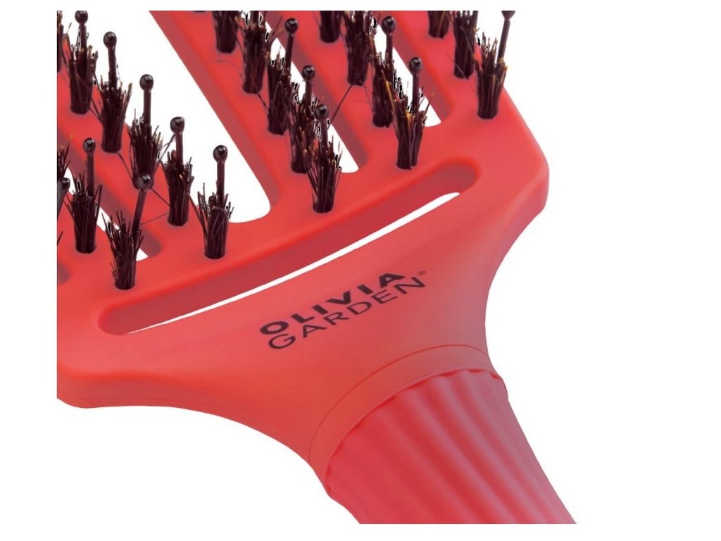 Olivia Garden Fingerbrush je revoluční kartáč navržený pro snadné a šetrné rozčesávání vlasů. Jeho zakřivený tvar kopíruje hlavu, díky čemuž je česání pohodlné a styling precizní. Kombinace 100% kančích štětin a nylonových štětin pomáhá dodat vlasům přirozený lesk a zároveň umožňuje jemné, ale účinné rozčesávání bez tahání a poškozování.