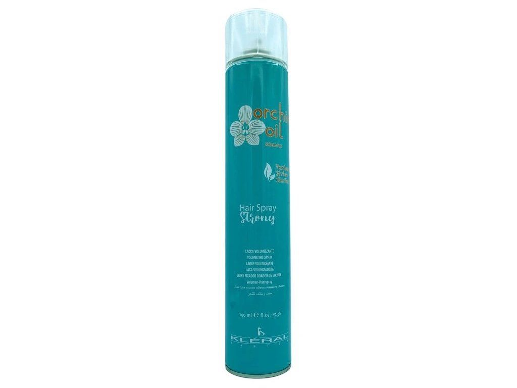 Kléral Orchid Oil Keratin Hair Spray Strong - 750 ml, objemový lak na vlasy se silnou fixací