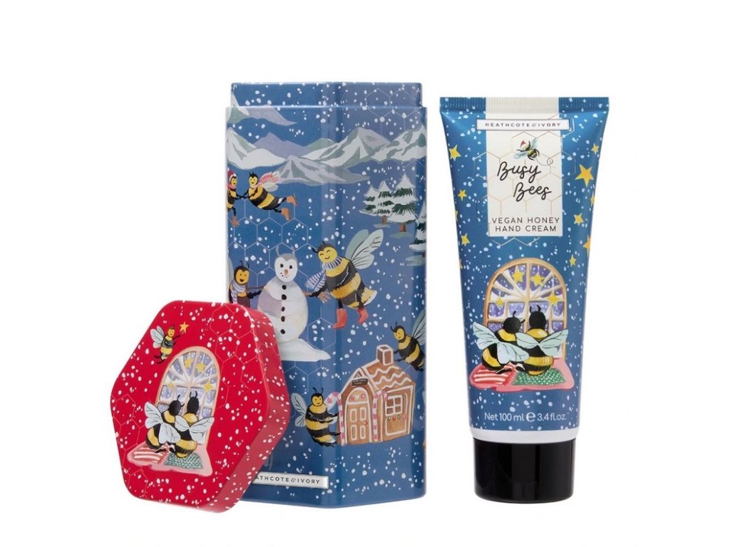 Heathcote & Ivory Busy Bees hand cream 100ml krém na ruce v plechové dóze s vánočním motivem