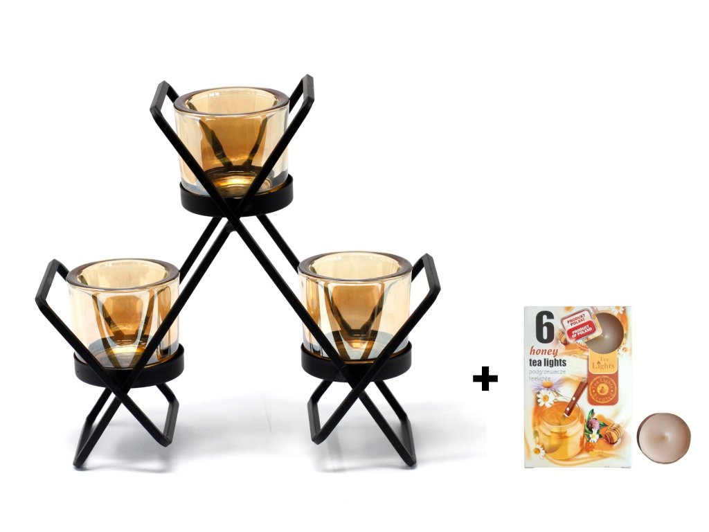 Kovový svícen Zig Zag na 3 svíčky + Zdarma 6ks čajových svíček